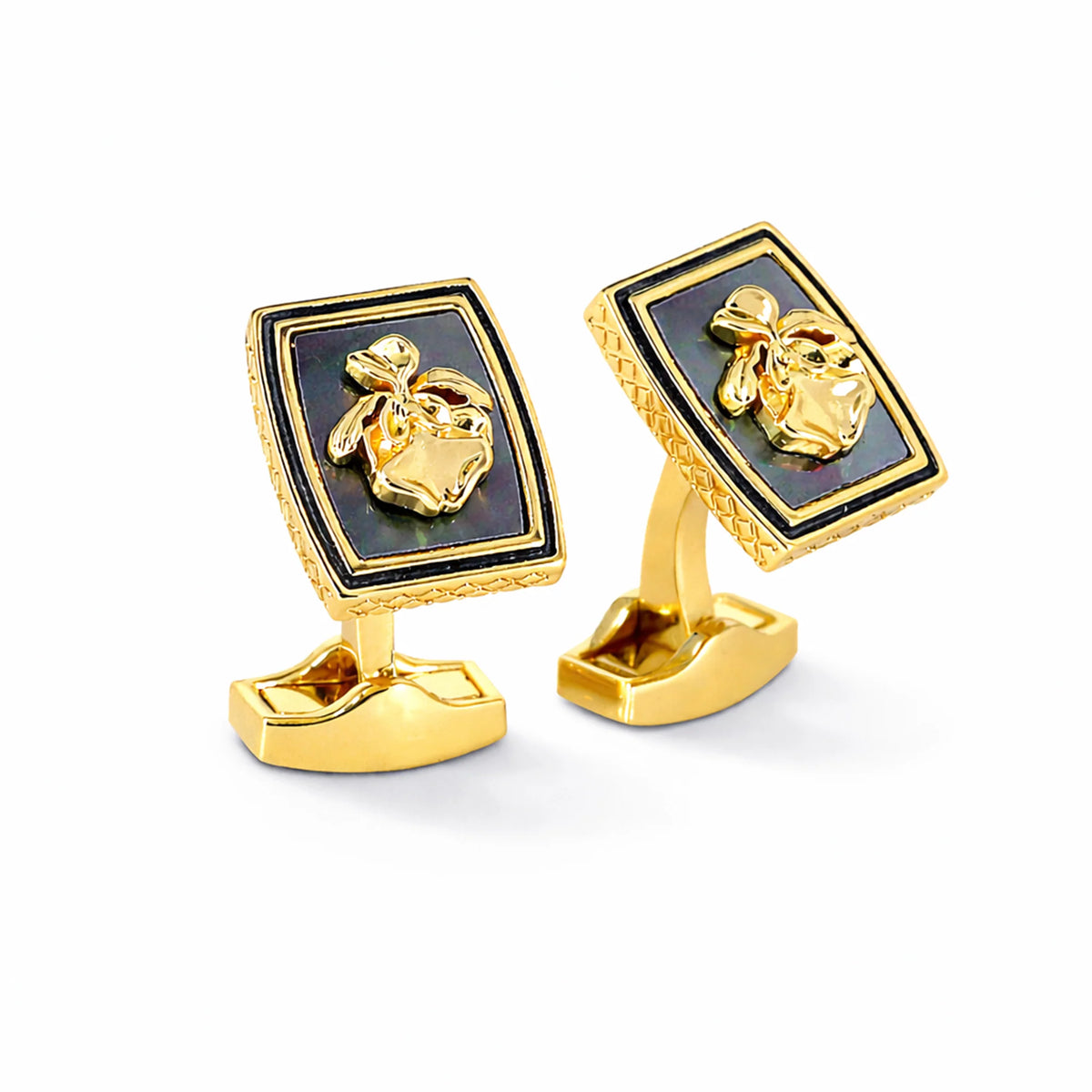 ONLINE EXCLUSIVE Gold Monogram Cufflinks with Lacquer Finish (Online Exclusive)