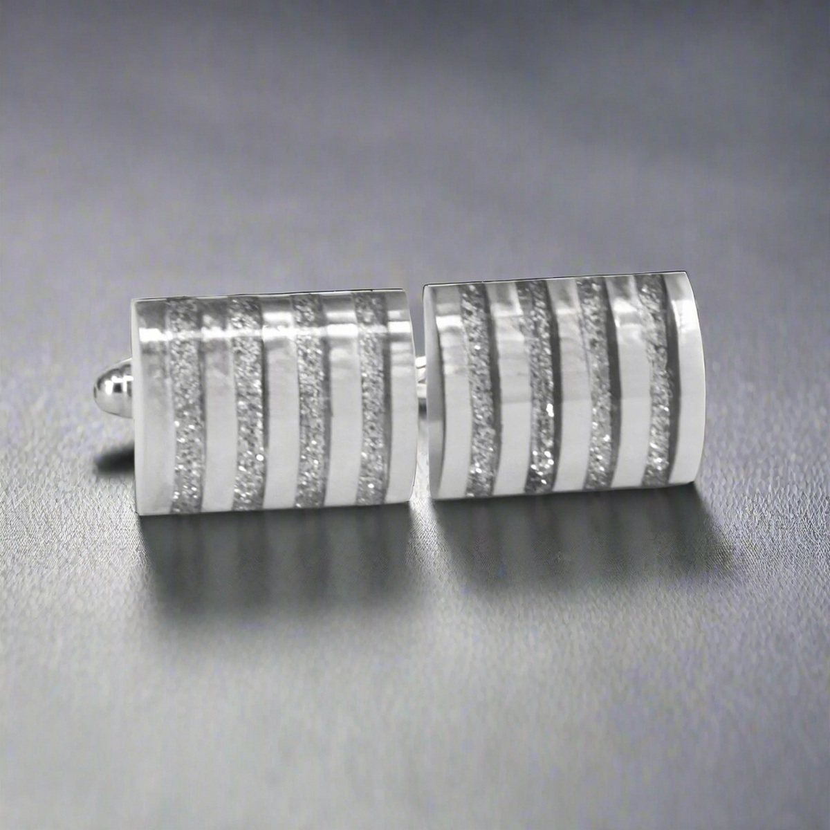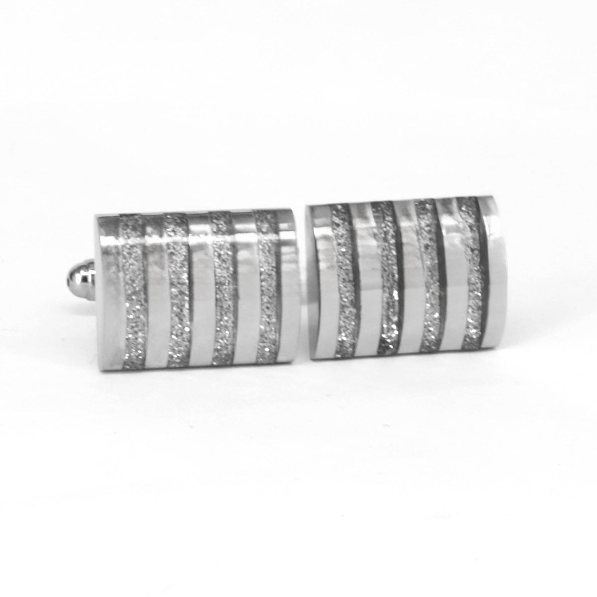 MarZthomson Mother Of Pearl Stripe Silver horizontal Rectangle Cufflinks