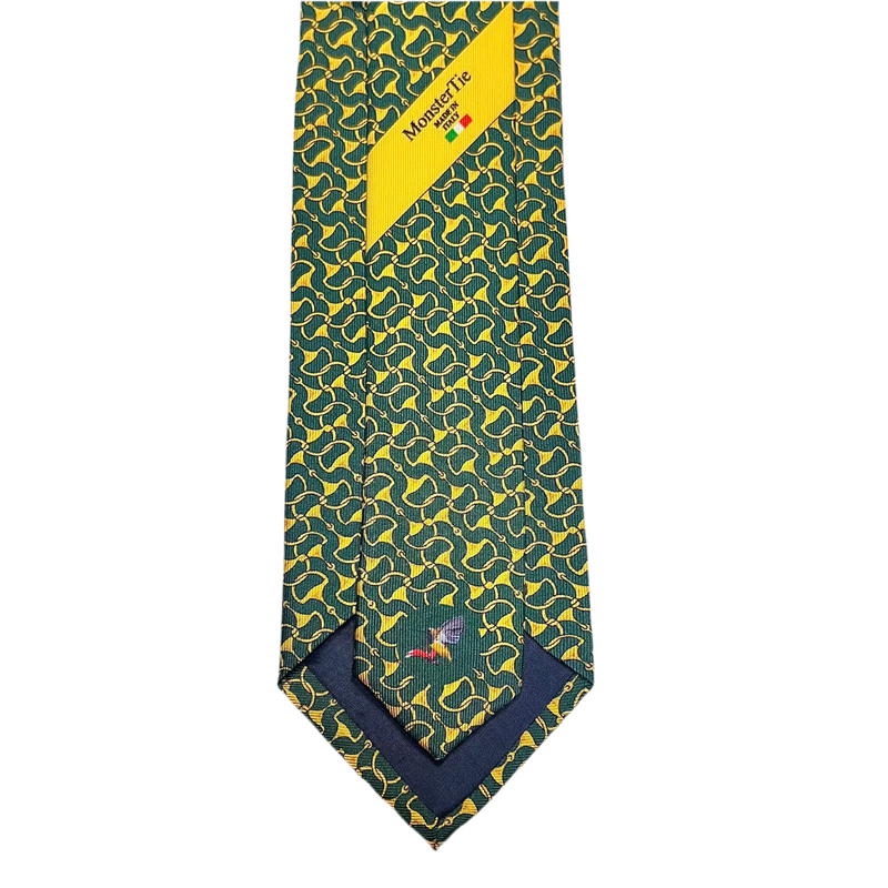 Unleash your inner beast with the daring MonsterTie D-Ring Snaffle Green Necktie! Made in Italy from 100% silk, this necktie exudes high quality and luxury. Let the bold print and vibrant green color fuel your sense of adventure and risk-taking. With this tie, you'll be ready to conquer any challenge ahead. Don't settle for boring neckwear - choose MonsterTie and elevate your style game to new heights!