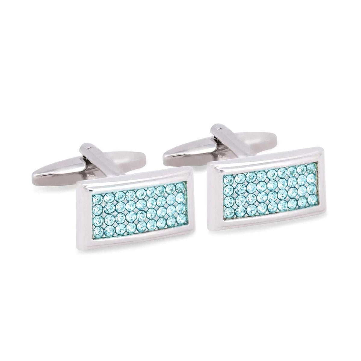 3crystals Silver Square Cufflinks with blue and black-Cufflinks-marzthomson-Cufflinks.com.sg