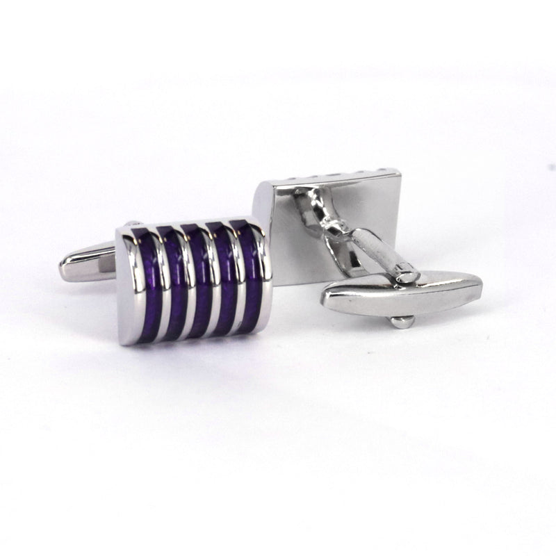 Rectangle Purple Enamel with Blue and silver Stripe Grill Cufflinks (Online Exclusive)