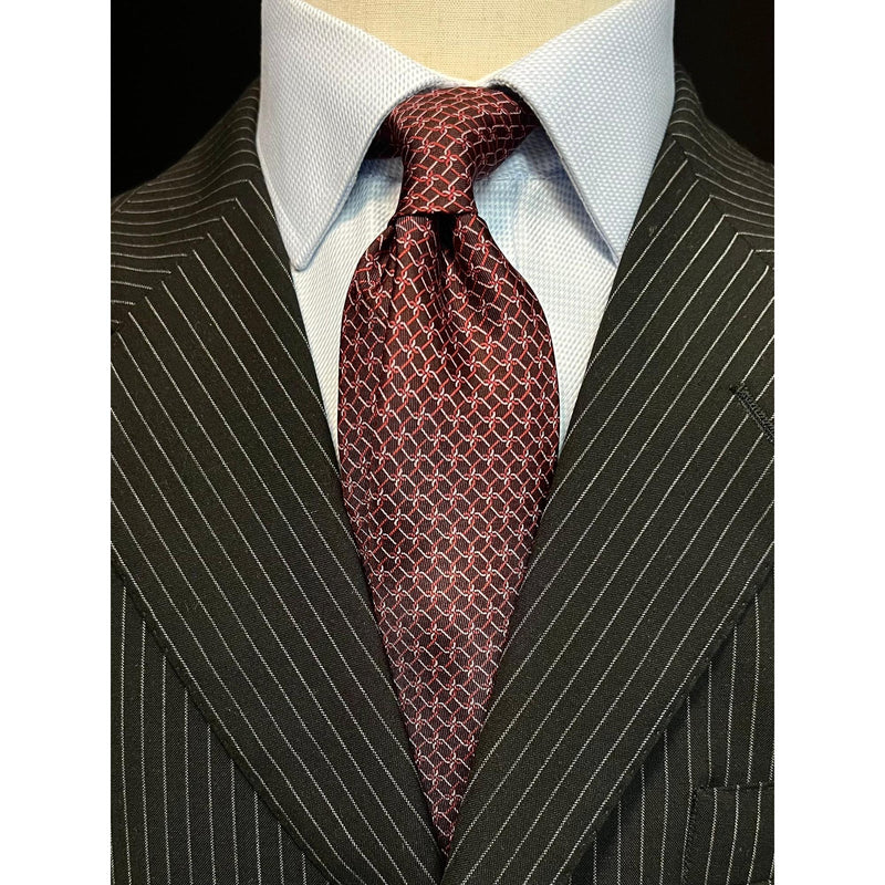 Discover the enduring elegance of Lanvin, a prestigious French fashion house founded by Jeanne Lanvin in 1889. The iconic Burgundy Ring Cravatta Necktie boasts a striking print and ring design.