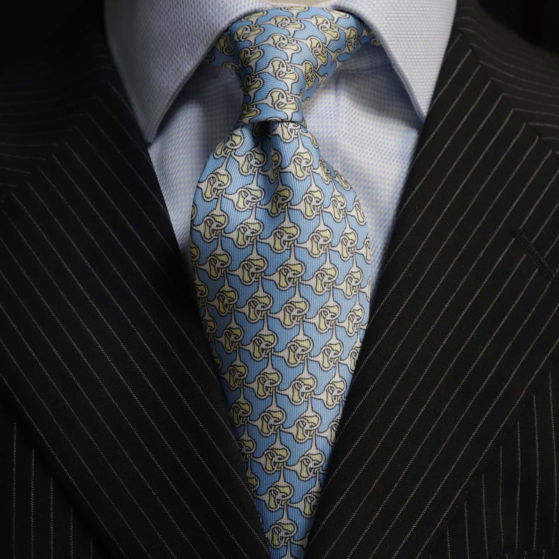 MonsterTie Printed Eggbutt snaffle Light Blue Necktie