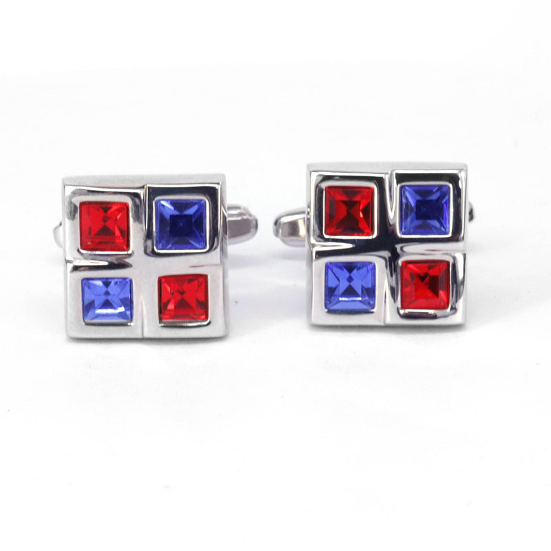 Featuring the sparkle of four vibrant crystals, these cufflinks add a refined and elegant touch to your attire. Perfect for transitioning seamlessly from a typical workday to an evening event, they pair effortlessly with blue, pink, and purple shirts.