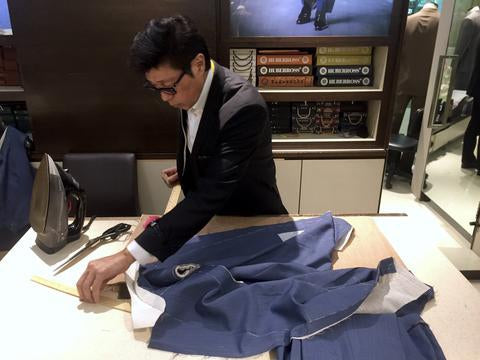 艾伦解释说,这样做的目的有两个。首先,在完成重大更改之前,他不喜欢直接在选定的结构上工作。虽然这会带来更高的成本,但合身的服装允许对剪裁、翻领峡谷和纽扣位置进行快速修改。事实上,艾伦就在我们眼前对肖恩的合身服装进行了修改。在同样的 25 分钟内,艾伦与他的客户进行了个人对话,因为他熟练地重新配置了合身的服装。实际上,这使得 Alan 的客户(包括商务旅客和高级管理人员)能够在同一个任命中再次得到满足。这样就无需再进行一轮装配,而不会影响定制流程。