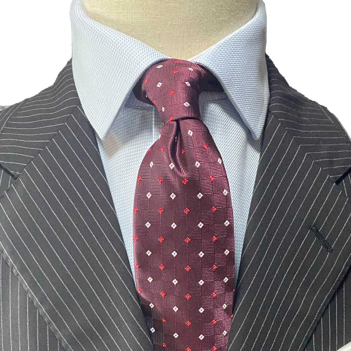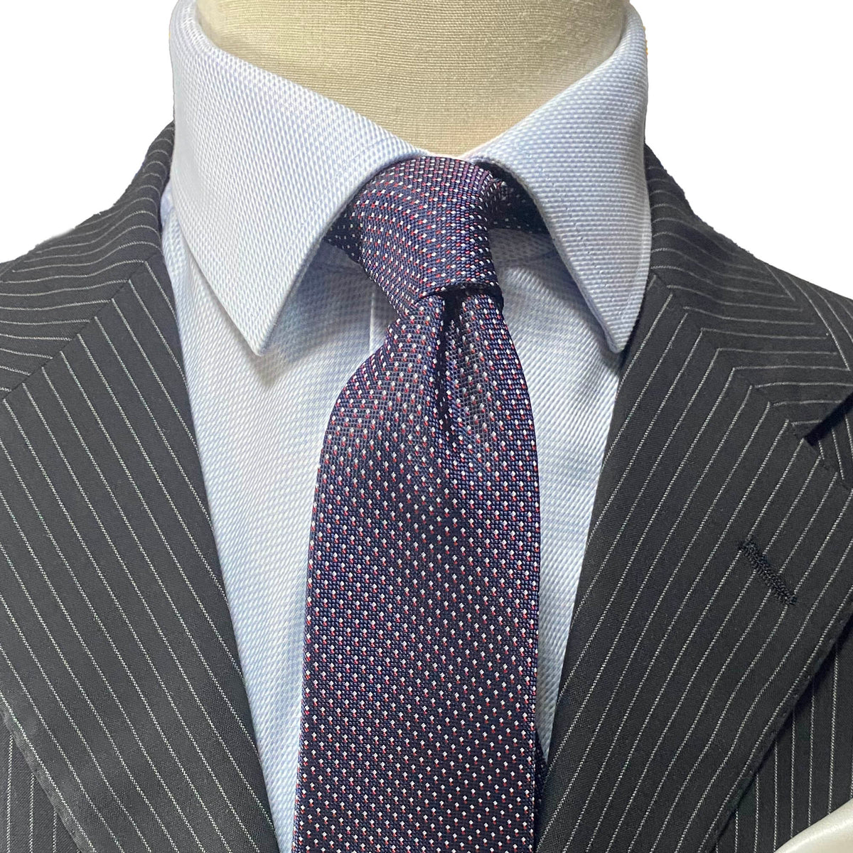 Orobianco L'unique OroTie Jacquare Navy Background with white and Red small Square