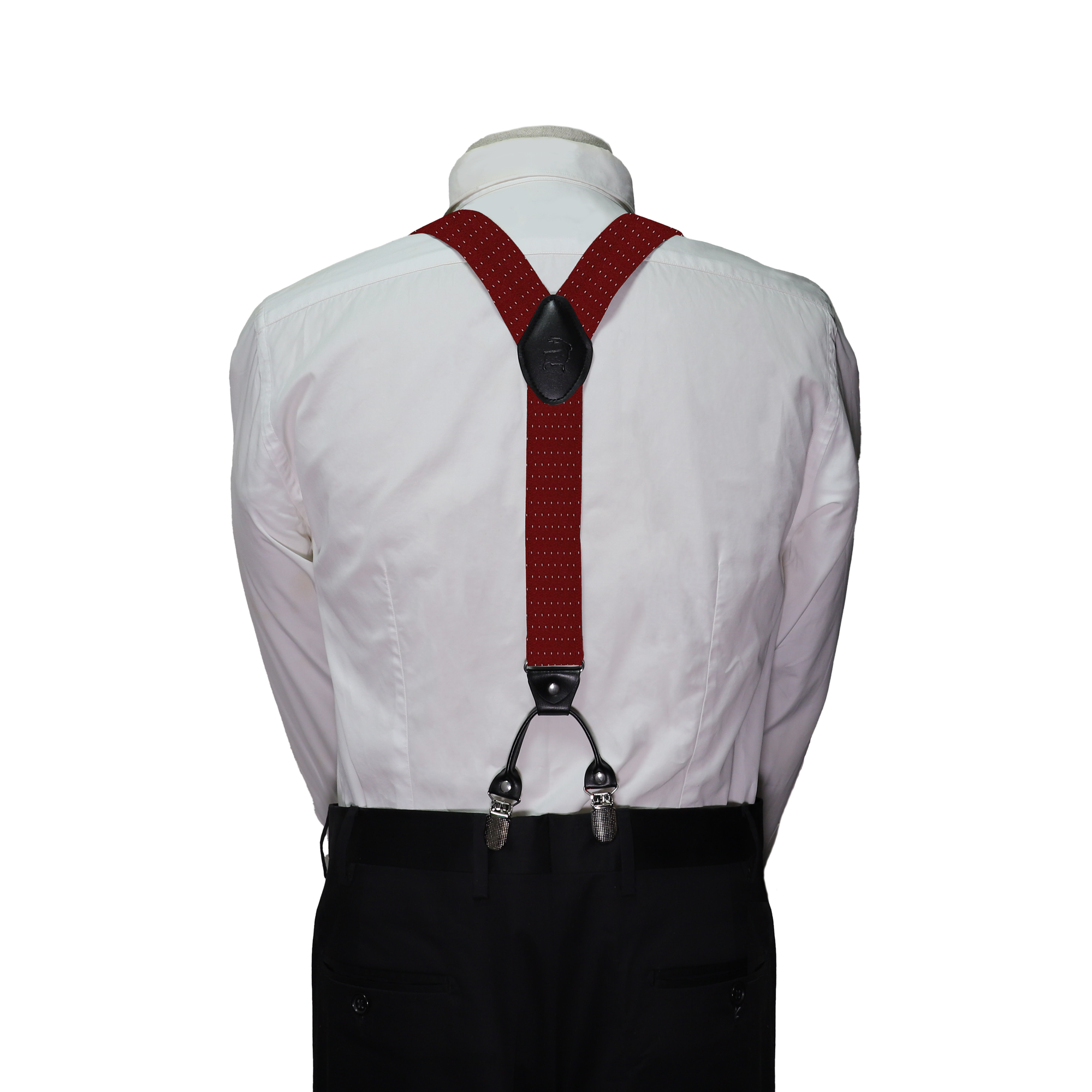 - Elegant Design: A red base accented with subtle white dots adds a touch of refined charm, making these suspenders suitable for both formal and semi-formal occasions.